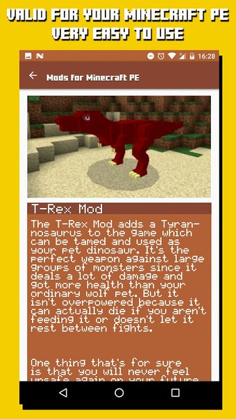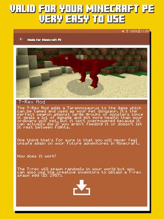 هذه هي أسهل طريقة لتثبيت تعديلات Minecraft PE. كل ما تحتاجه هو BlockLauncher (مجاني أو Pro) وتطبيق Minecraft Pocket Edition الرسمي. إذا كنت قد قمت بتثبيته ، فما عليك سوى تنزيل تطبيق Mods for Minecraft PE واختيار فئة والبدء في التنزيل. لا مزيد من البحث عن الملفات الصحيحة أو التعليمات الصحيحة. إذا لم يكن مثبتًا لديك ، فما عليك سوى النقر فوق الزر "تثبيت Mod".